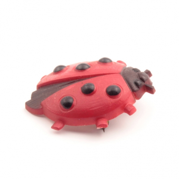 Vintage German or Czech early celluloid plastic red ladybird pin brooch. Found in original factory packaging, completely untouched. Some oxidation to the pin.